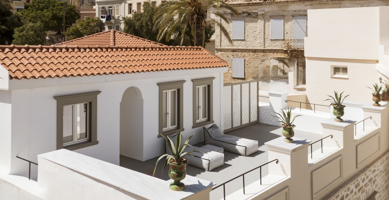 Tucked away in a quiet side street, Alma Syros offers the best of both worlds: immediate access to the cultural heart of Ermoupolis and the gentle calm of a private retreat.
