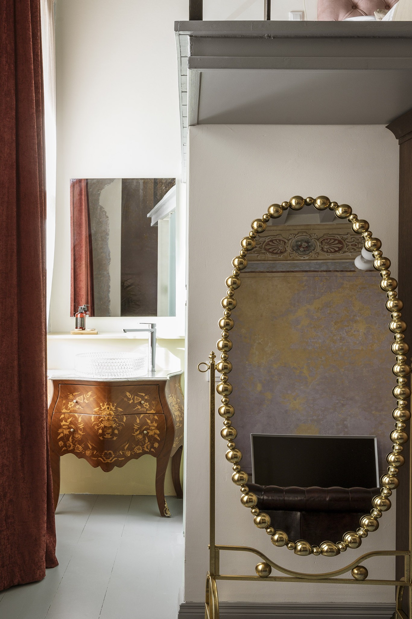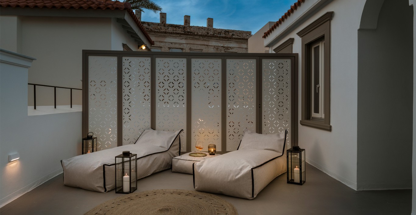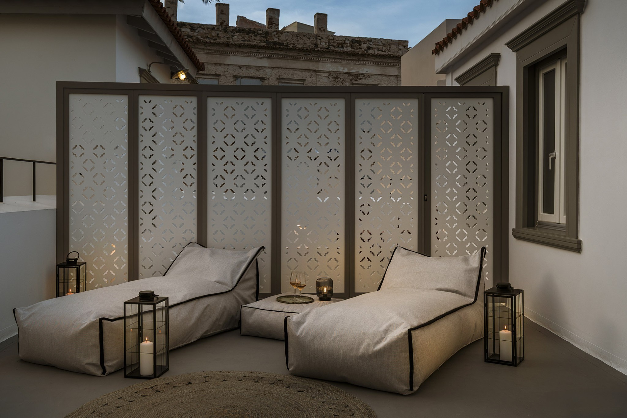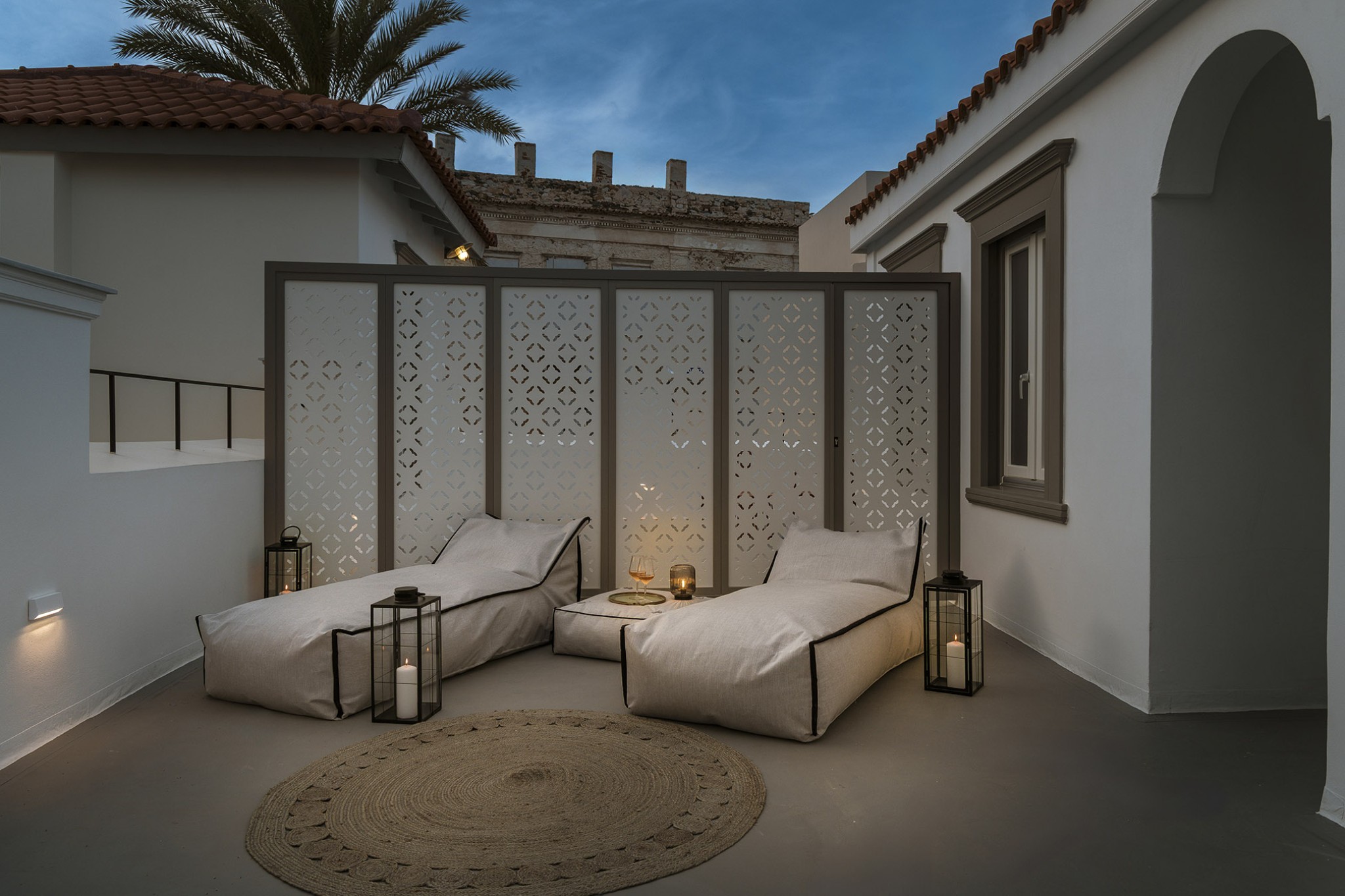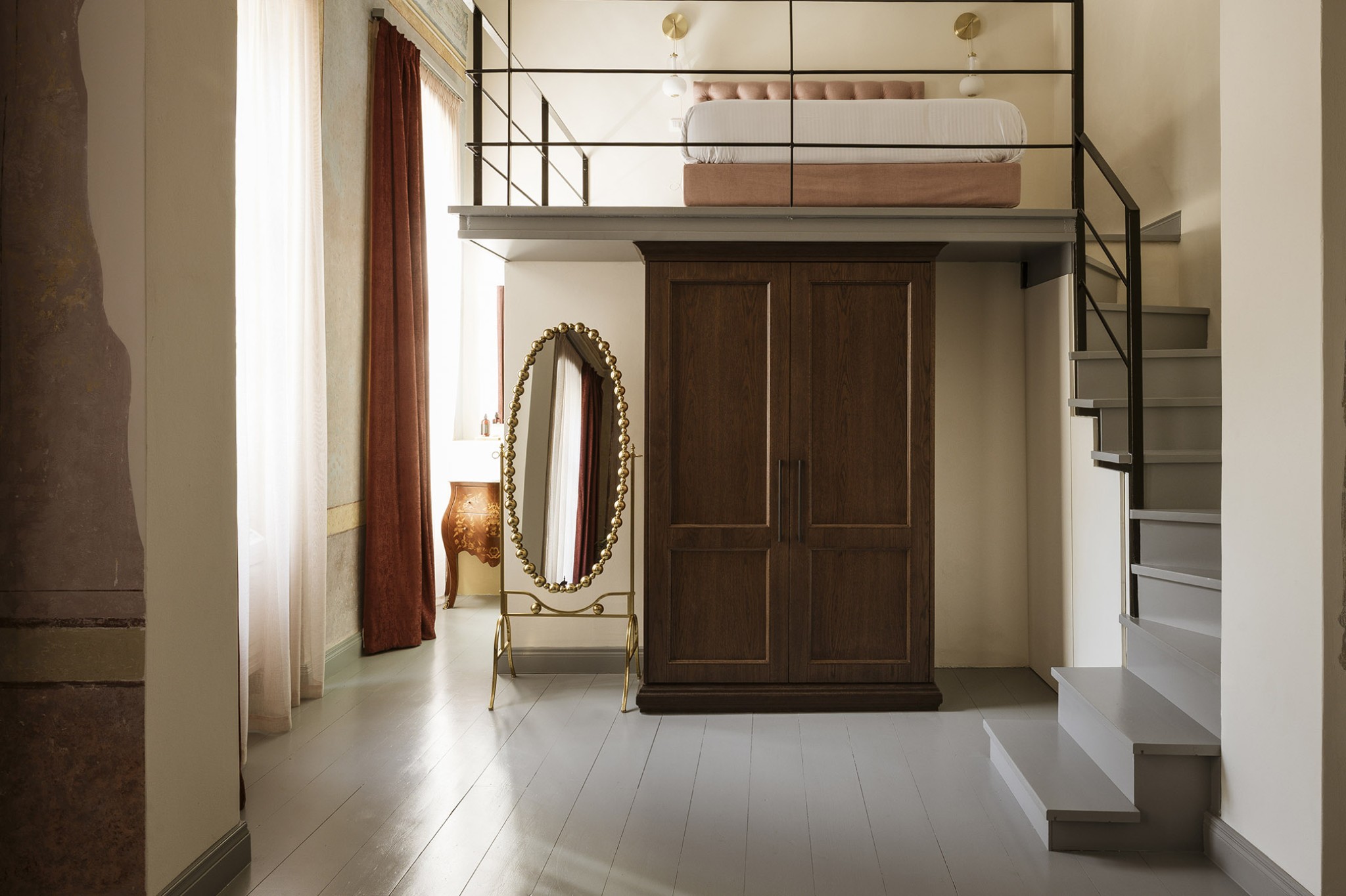 Nestled on the tranquil first floor, Suite VII spreads gracefully over two levels, offering 40 square meters of intimate comfort designed for two guests. Step out onto the private balcony to breathe in the peaceful ambiance, or ascend to the rooftop terrace where the vast sky stretches endlessly, inviting moments of quiet contemplation and serene escape. This suite is a harmonious blend of classic charm and discreet luxury, a retreat that cradles you in calm and sophistication.